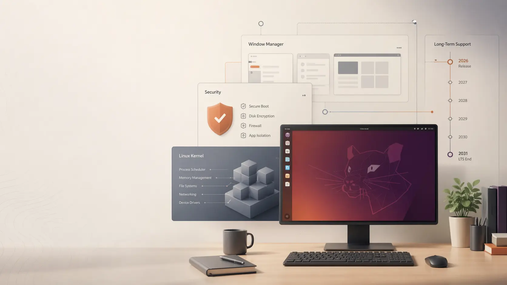 | Modern cryptographic defaults | Canonical explicitly points to OpenSSH 10.2, hybrid post-quantum key exchange by default, and continued movement away from older cryptography. [2] | Most users will never feel this in the interface, but this is exactly how LTS releases set new technical norms for years ahead. |